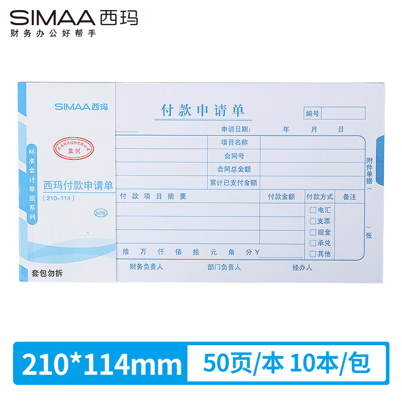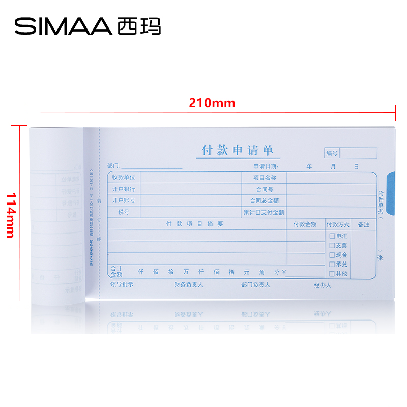 西玛 SIMAA SS011510 付款申请单 210*114mm 50页/本 10本/包 计价单位:本