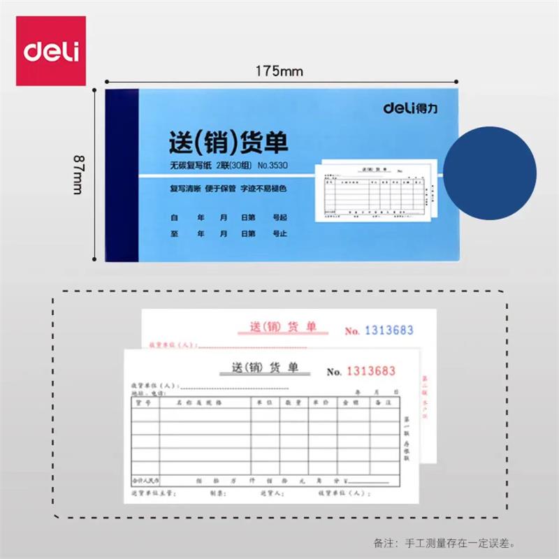 得力 deli 3530 无碳复写单据 二联 87*175mm 蓝色 计价单位:本