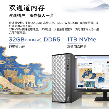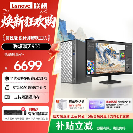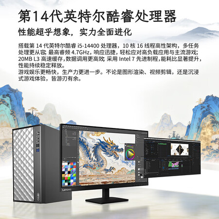 联想瑞天900游戏主机设计师台式电脑高性能AI设计游戏台式机新品14代i532G1T5060+23.8英寸