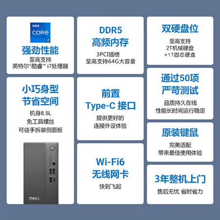 首页 / 计算机设备 / 计算机设备 / 台式计算机 / 【戴尔ECS1250-R1362B】戴尔成就新款高性能台式电脑主机(14代i3-1410016GDDR5512G)23.8大屏商用办公教育学习