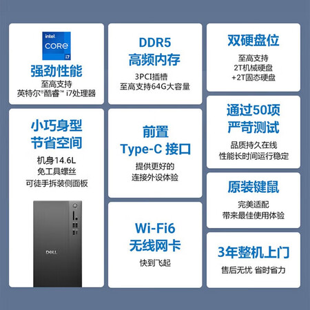 首页 / 计算机设备 / 计算机设备 / 台式计算机 / 戴尔(DELL)ECT125012代酷睿高性能台式电脑主机商用家用主机灵越整机全套成就3030升级大机箱+23.8英寸显示器i3-121008G内存512G固态定制