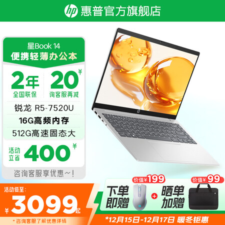 惠普(HP)星Book14锐龙版轻薄本可选星Book15大屏办公学生网课Pro商务笔记本电脑【高颜值便携】星Book14英寸【热销爆款】R516G512G护眼全面屏