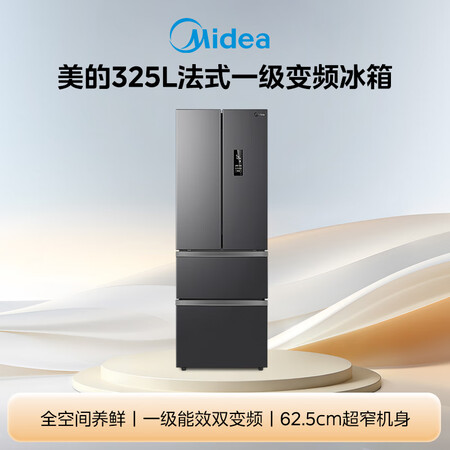 【美的BCD-325WFPM(E)】美的(Midea)325L法式多门冰箱小户型超薄风冷无霜一级能效变频节能净味以旧换新BCD-325WFPM(E)国家补贴