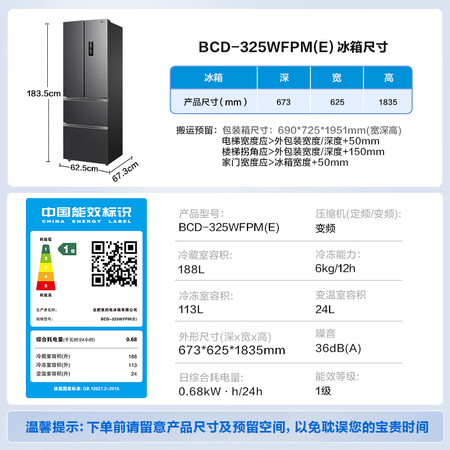 首页 / 电器设备 / 生活用电器 / 电冰箱 / 【美的BCD-325WFPM(E)】美的(Midea)325L法式多门冰箱小户型超薄风冷无霜一级能效变频节能净味以旧换新BCD-325WFPM(E)国家补贴