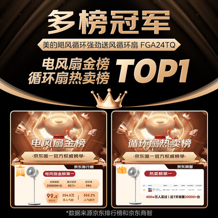 【美的FGA24TQ】美的(Midea)【暴风循环】空气循环扇大风量摇头电风扇家用台式落地扇轻音卧室节能小风扇柔风轻羽扇FGA24TQ