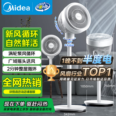 首页 / 电器设备 / 生活用电器 / 风扇 / 【美的FGA24TQ】美的(Midea)【暴风循环】空气循环扇大风量摇头电风扇家用台式落地扇轻音卧室节能小风扇柔风轻羽扇FGA24TQ